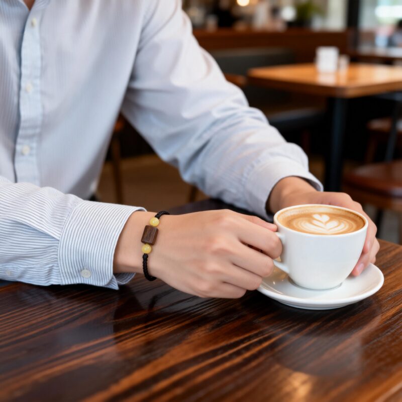 We work primarily with natural woods, stones, and handcrafted cord — materials chosen not for decoration, but for their inherent character.
