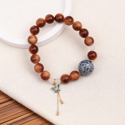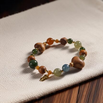 Handcrafted Cord Bracelet with Old Mountain Sandalwood and Hetian Jade Accents