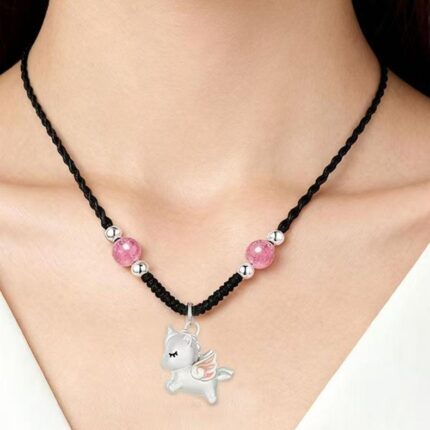 Handcrafted Red String Necklace with Sterling Silver Horse-Quiet