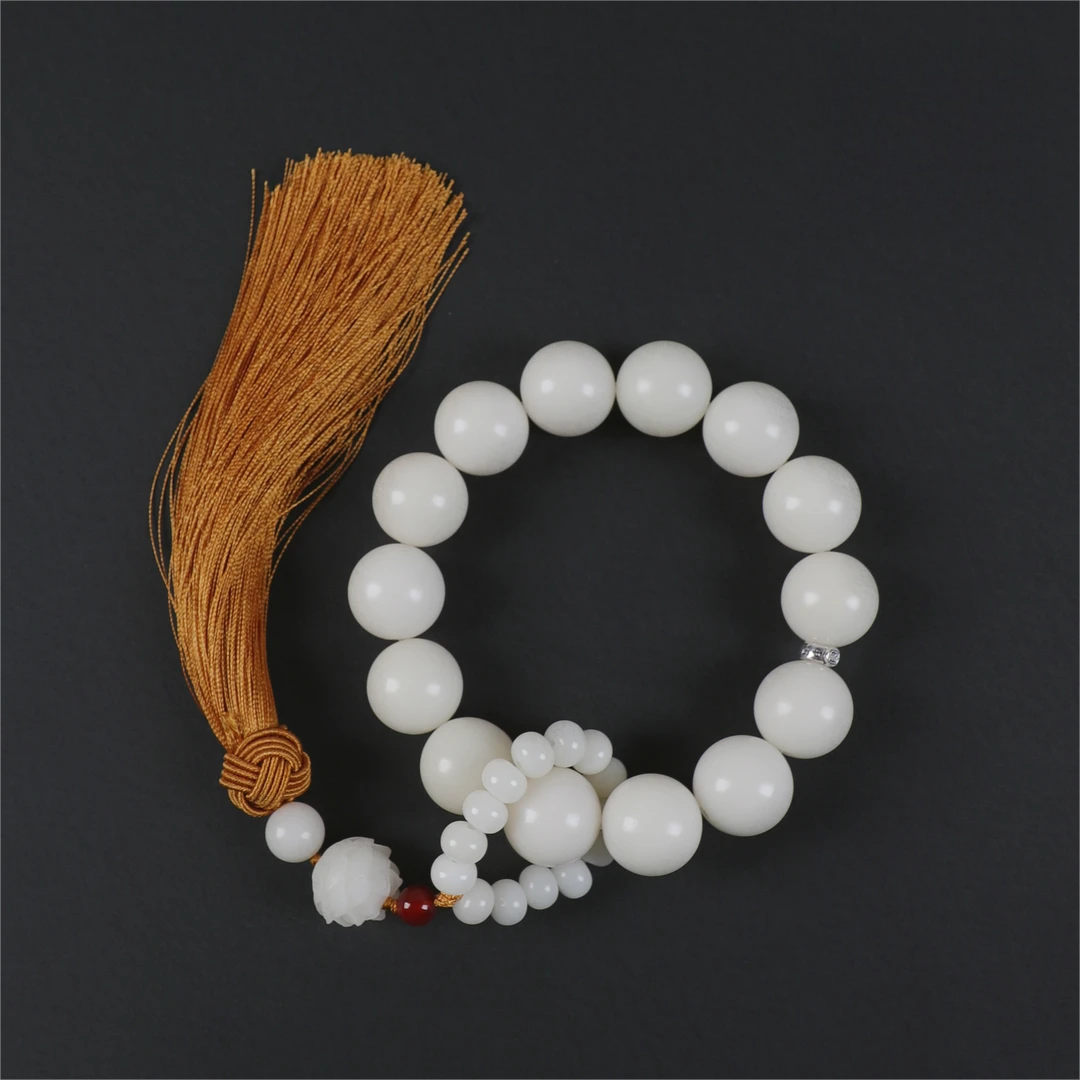 Buddha Energy Feng Shui Stone White Bodhi Root Prayer Beads Bracelet