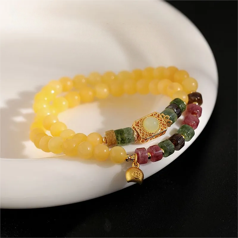 Buddhist energy stone, feng shui ,wealth, luck ,Citrine Tourmaline bracelet