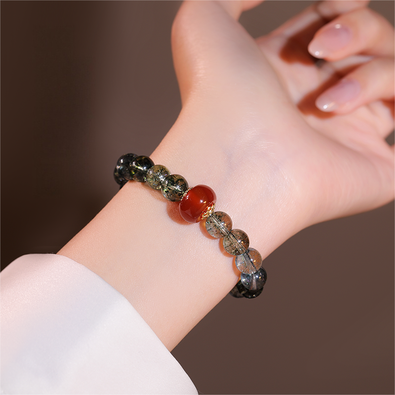 Buddha Energy Stone Feng Shui Wealth Protection Career Green Crystal Bracelet