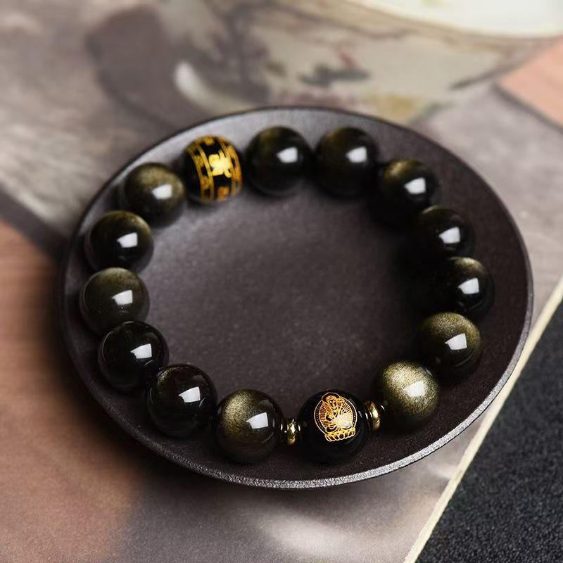 Feng shui,Buddha Stone, energy stones black obsidian ,energy protection,Guanyin Bodhisattva,Amulet,Obsidian bracelet