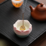 In Buddhism, the lotus flower is endowed with the most profound religious symbolic significance, permeating almost every aspect of Buddhist doctrine interpretation, ritual activities, and artistic creation. The Buddha often sits on a lotus seat, symbolizing the transcendence of worldly troubles.In Buddhism and Taoism, burning incense during meditation can help practitioners quickly focus their minds and enter a state of concentration. In the Zen tradition of “meditating on incense“, timing the burning of the incense and the method of observing the incense (such as staring at the flame until one closes one’s eyes and sees the light) can train one’s mind to remain calm and clear, and awaken the inherent light within oneself.