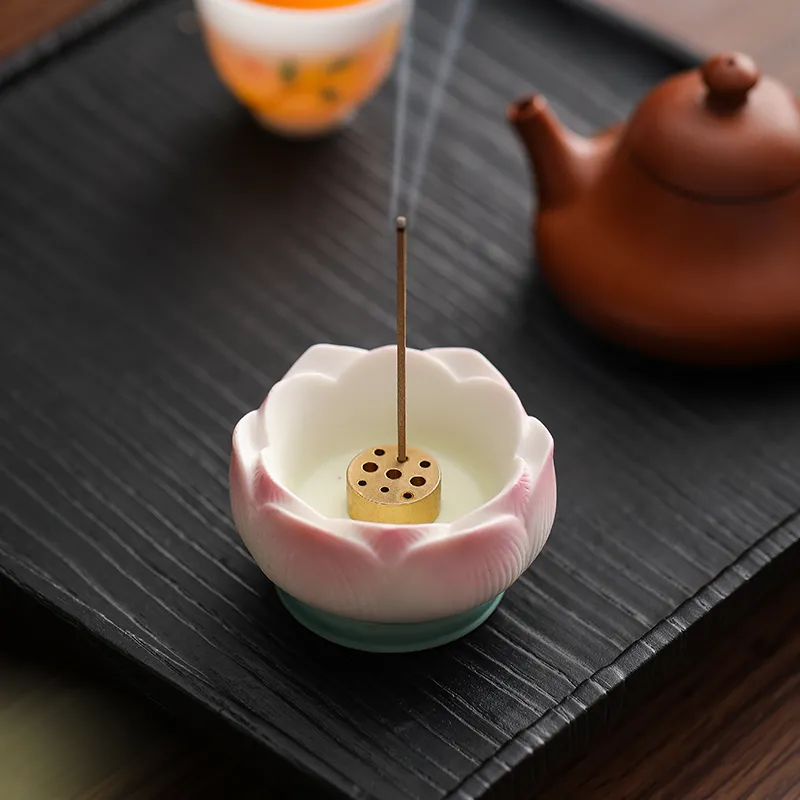 Home Five Elements Properties Earth Elemental Energy Ceramic Lotus-shaped Incense Burner