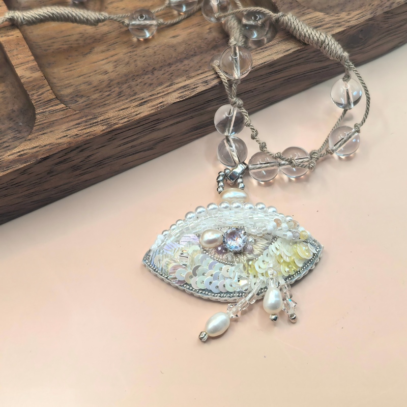 Feng Shui Beaded embroidery Handmade Evil Eye White Crystal Necklace