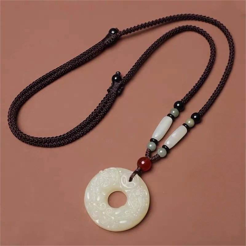 In Eastern metaphysics and Feng Shui,jade is regarded as the “essence of heaven and earth” and is believed to have the power to ward off evil and ensure safety.Taoism uses jade to make patterned jade gui, specifically for warding off evil and driving away ghosts. Many people wear jade ornaments, praying for health, happiness, and good fortune.The engraved pattern on the pendant is “Pixiu“, which holds a wonderful meaning of attracting wealth in traditional culture.