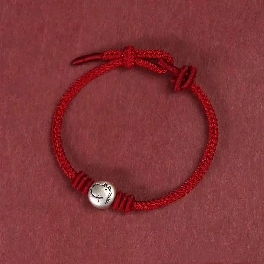 This bracelet is handwoven from deep red cotton string and finished with a small sterling silver horse charm — a form long associated in East Asian culture with motion, independence, and the courage to move forward.