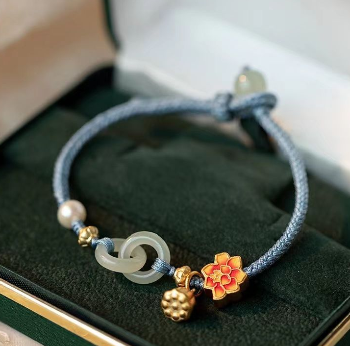 In Buddhism, the lotus flower is endowed with the most profound religious symbolic significance, permeating almost every aspect of Buddhist doctrine interpretation, ritual activities, and artistic creation. The Buddha often sits on a lotus seat, symbolizing the transcendence of worldly troubles.The meaning of the peace buckle is peace, happiness, health and energy protection.