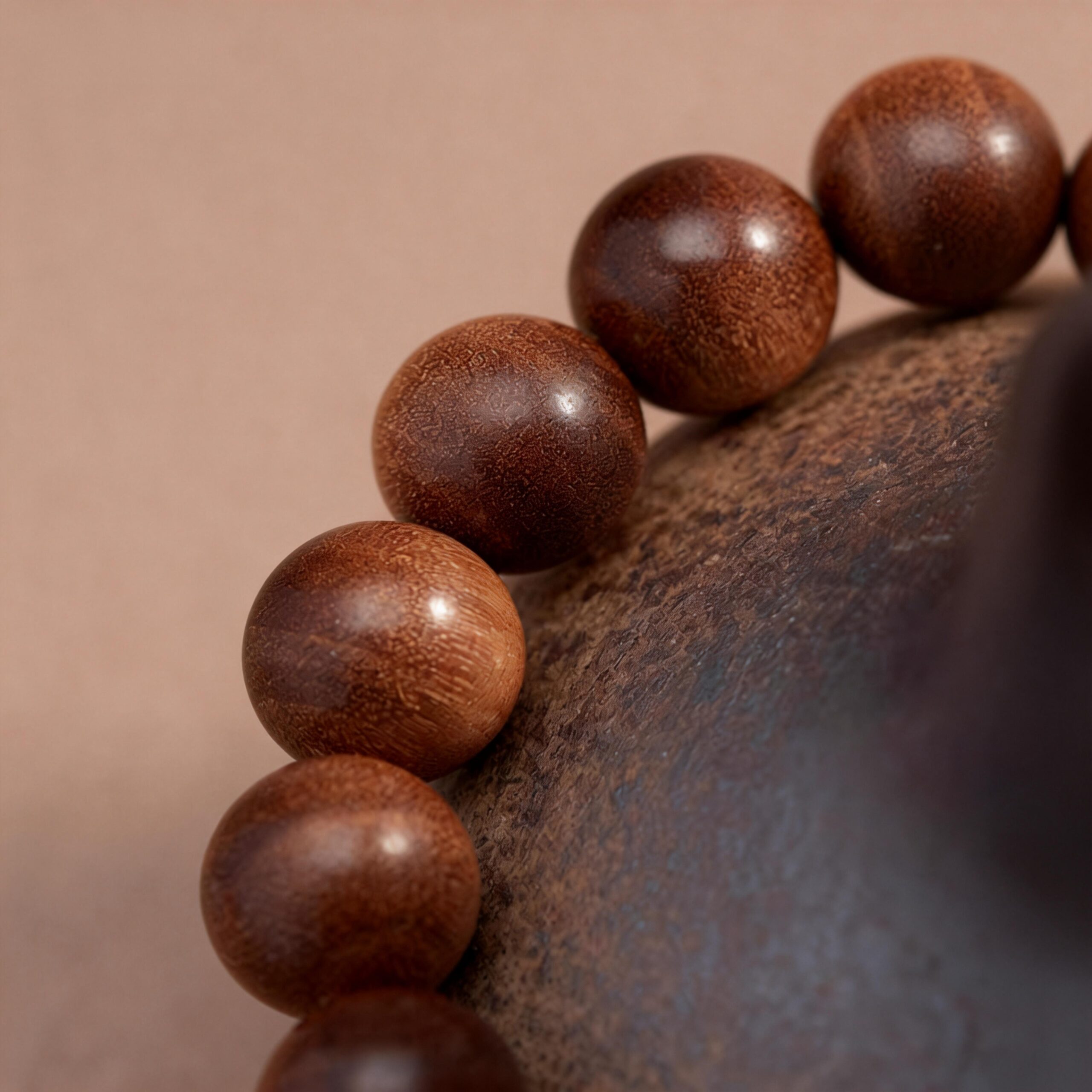 Mysore Sandalwood Round Bead Bracelet — Dark Grain, Sinking Grade