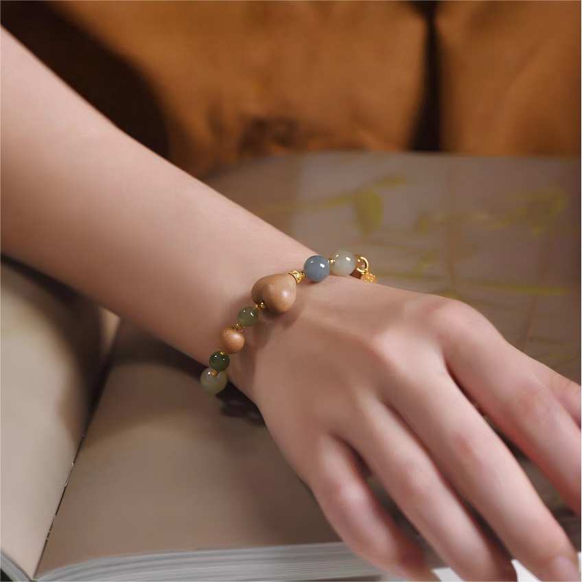 Heart-Cut Sandalwood & Hetian Jade
