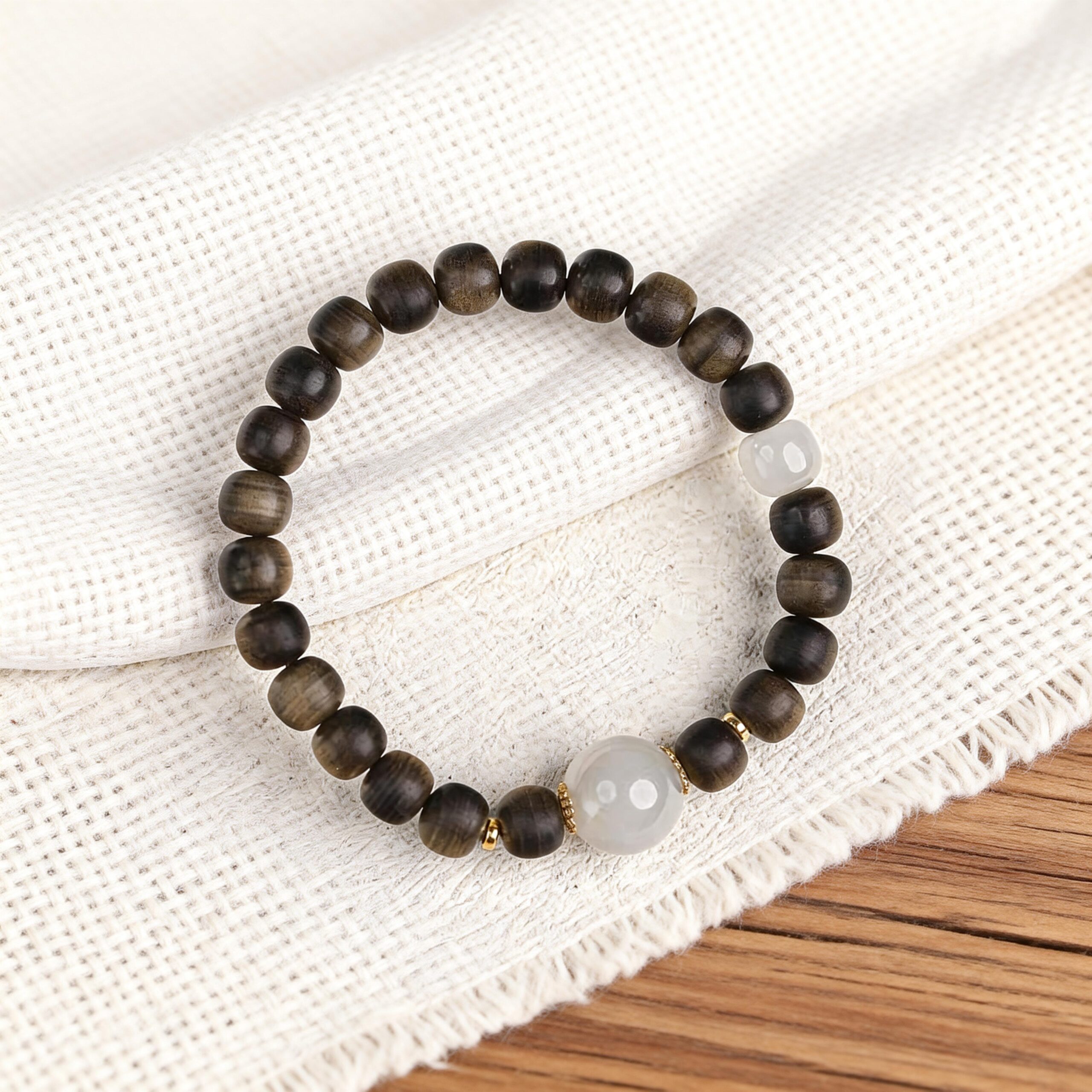 Sandalwood & Agate Beaded Bracelet-Balance