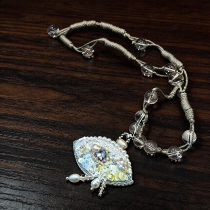 Hand-Embroidered Eye Pendant White Crystal Necklace — Trace