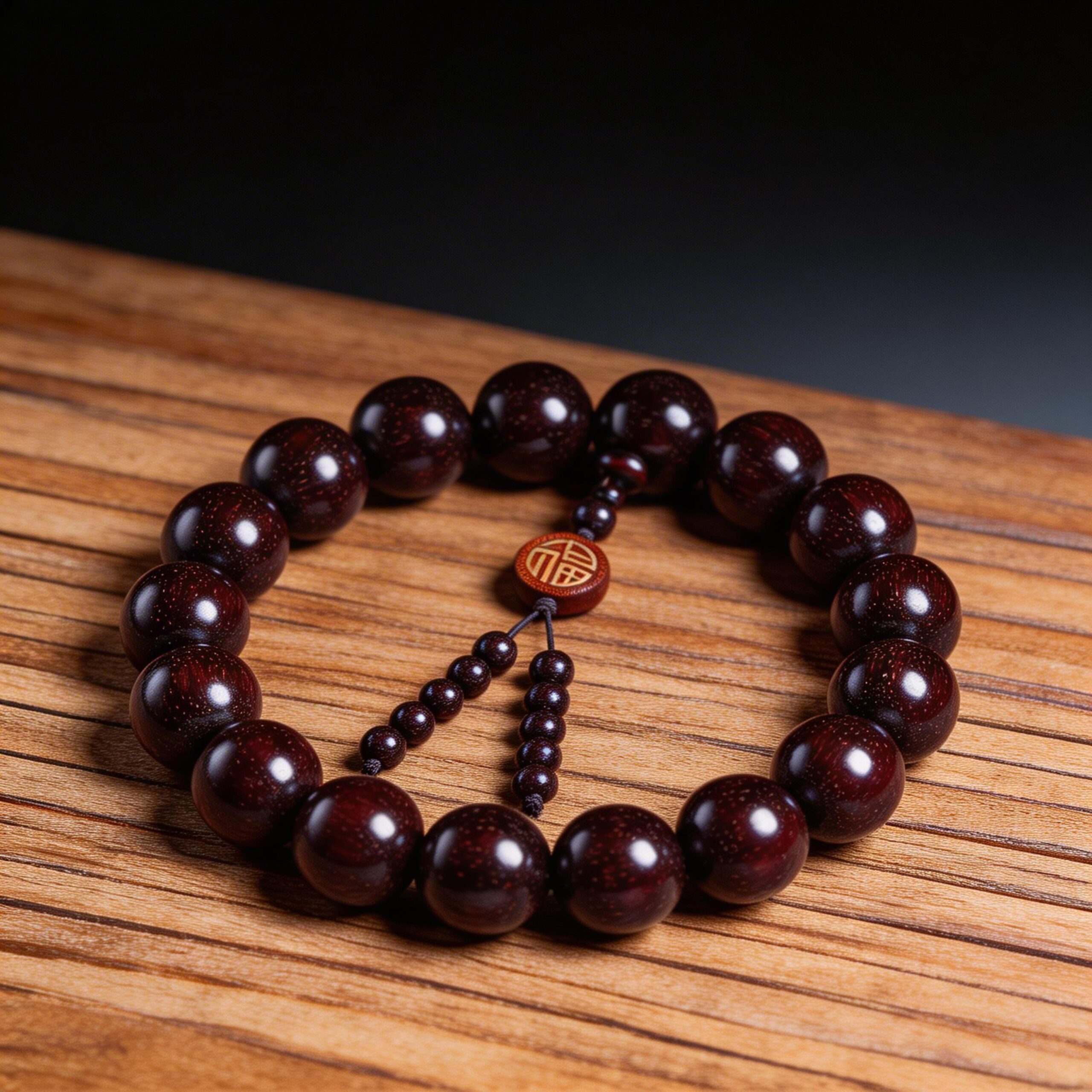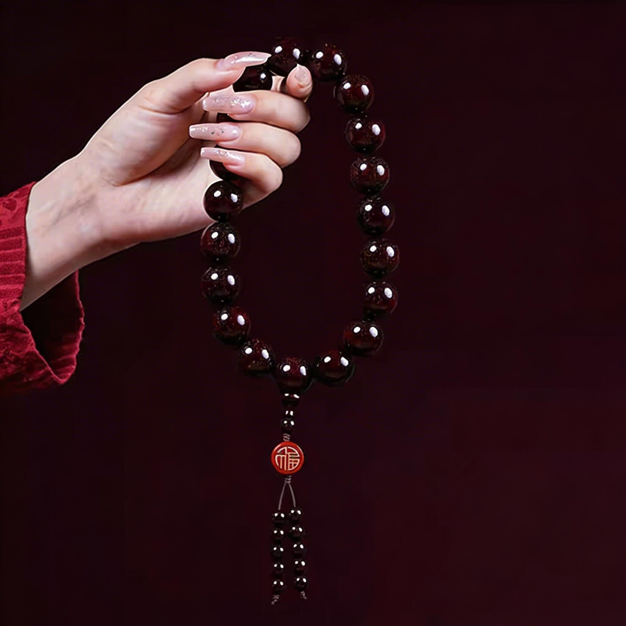 Red Sandalwood · Handheld Strand with Fu Pendant