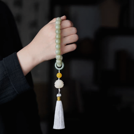 Hetian Green Jade Handheld Beads with Bodhi Accents and Lotus Pendant – TRACE Collection